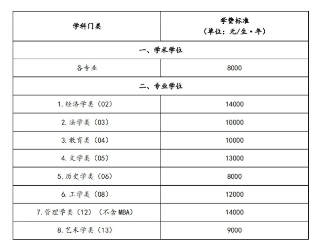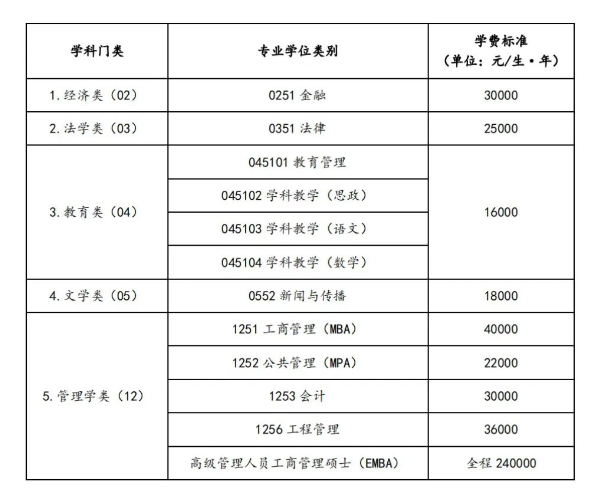 2.非全日制硕士研究生学费标准