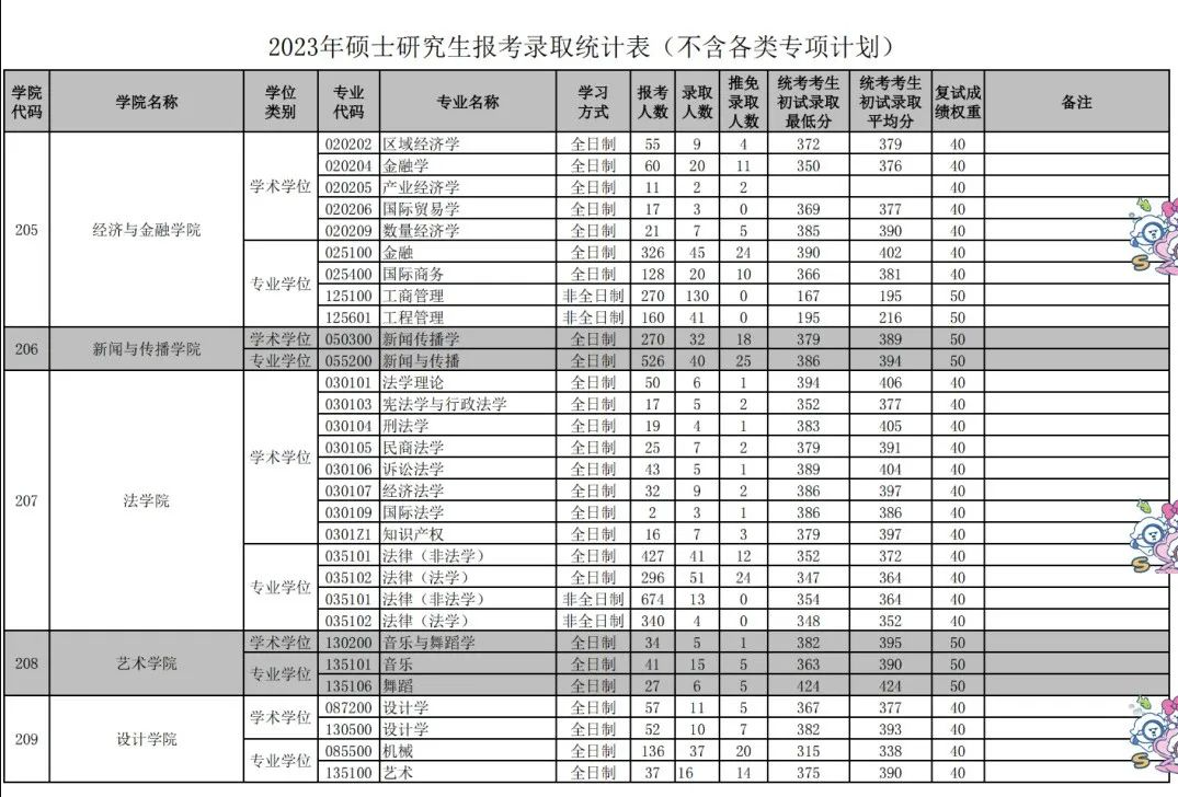 统考考生初试录取分数:2023年的最低录取分数和平均录取分数都比2022年稍高,分别增加了2分和5分。