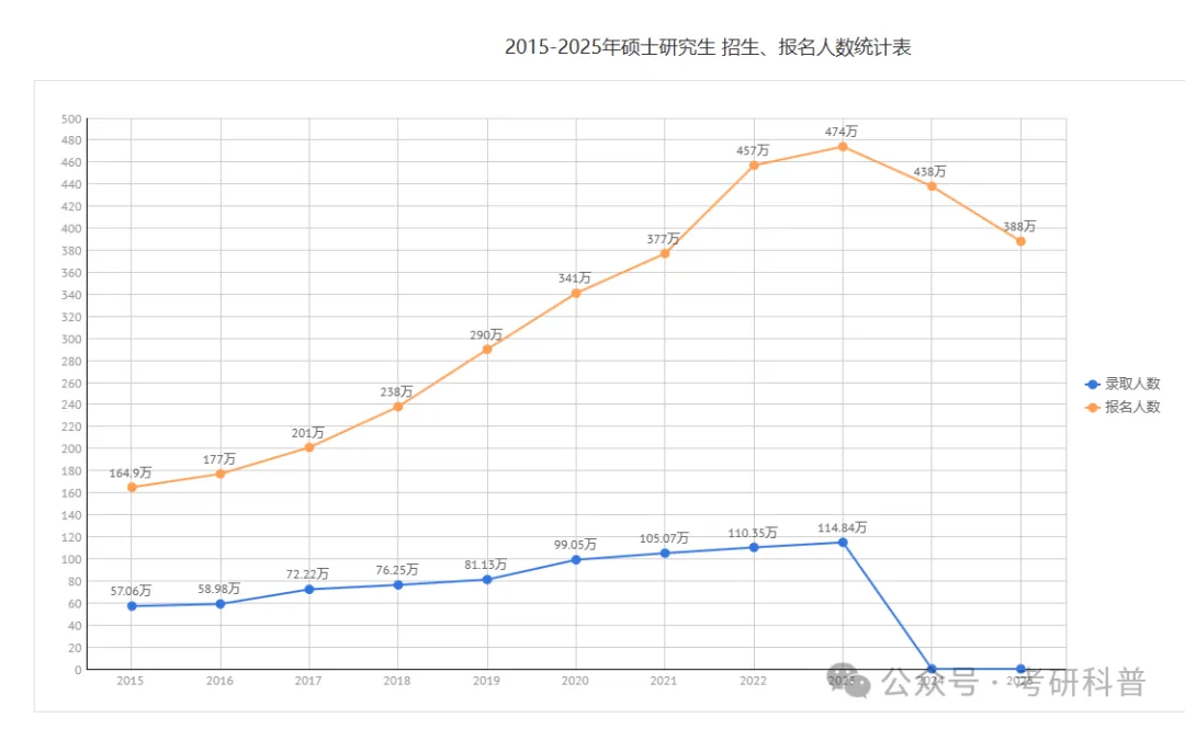 以下为2015-2025年历年考研报考、招生人数(硕士研究生)供大家参考~